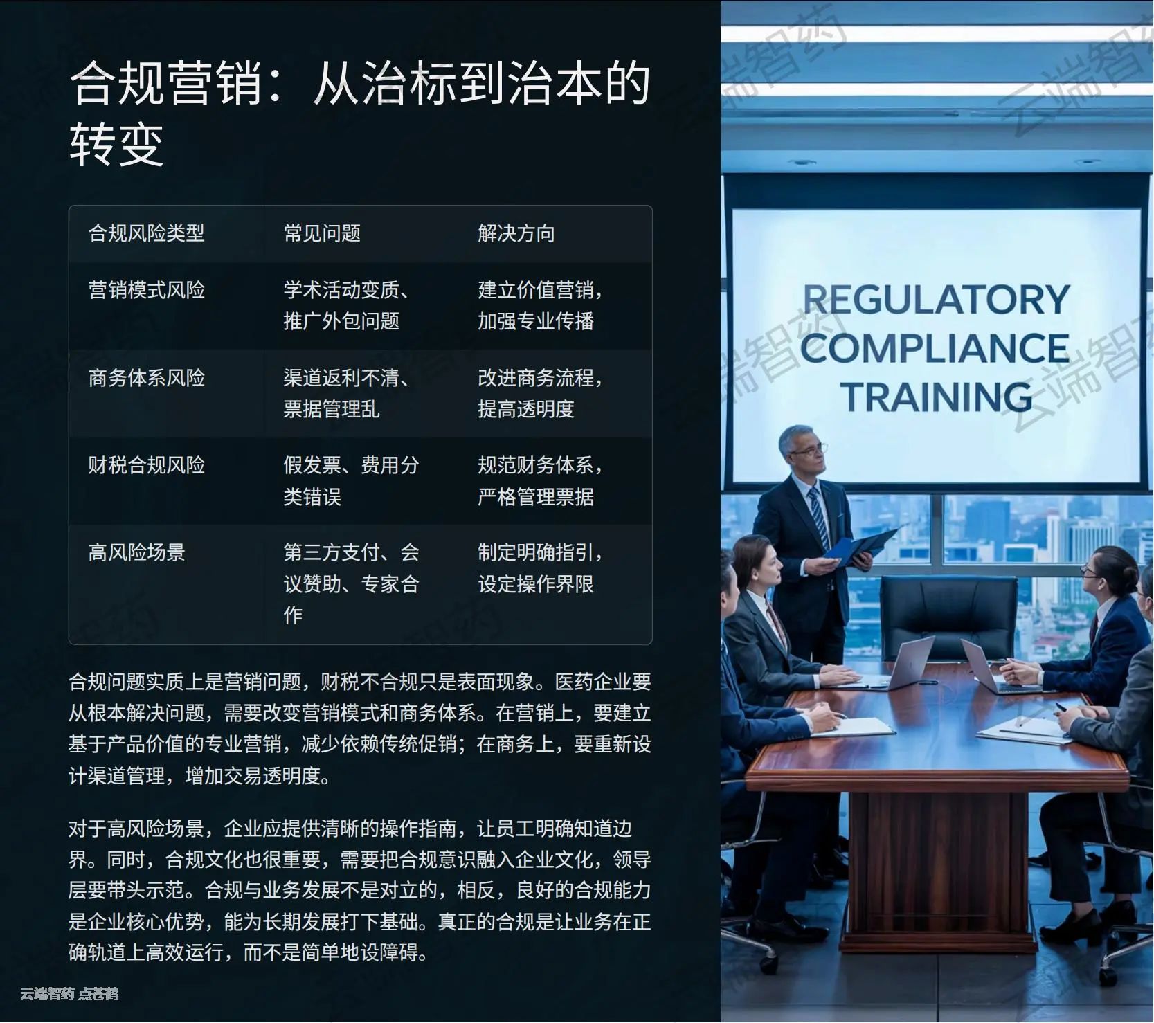 合規(guī)問題的本質是營銷問題,財稅合規(guī)只是外在表現(xiàn)。醫(yī)藥企業(yè)要實現(xiàn)從治標到治本的轉變,需要從營銷模式和商務體系兩個根本層面進行變革。